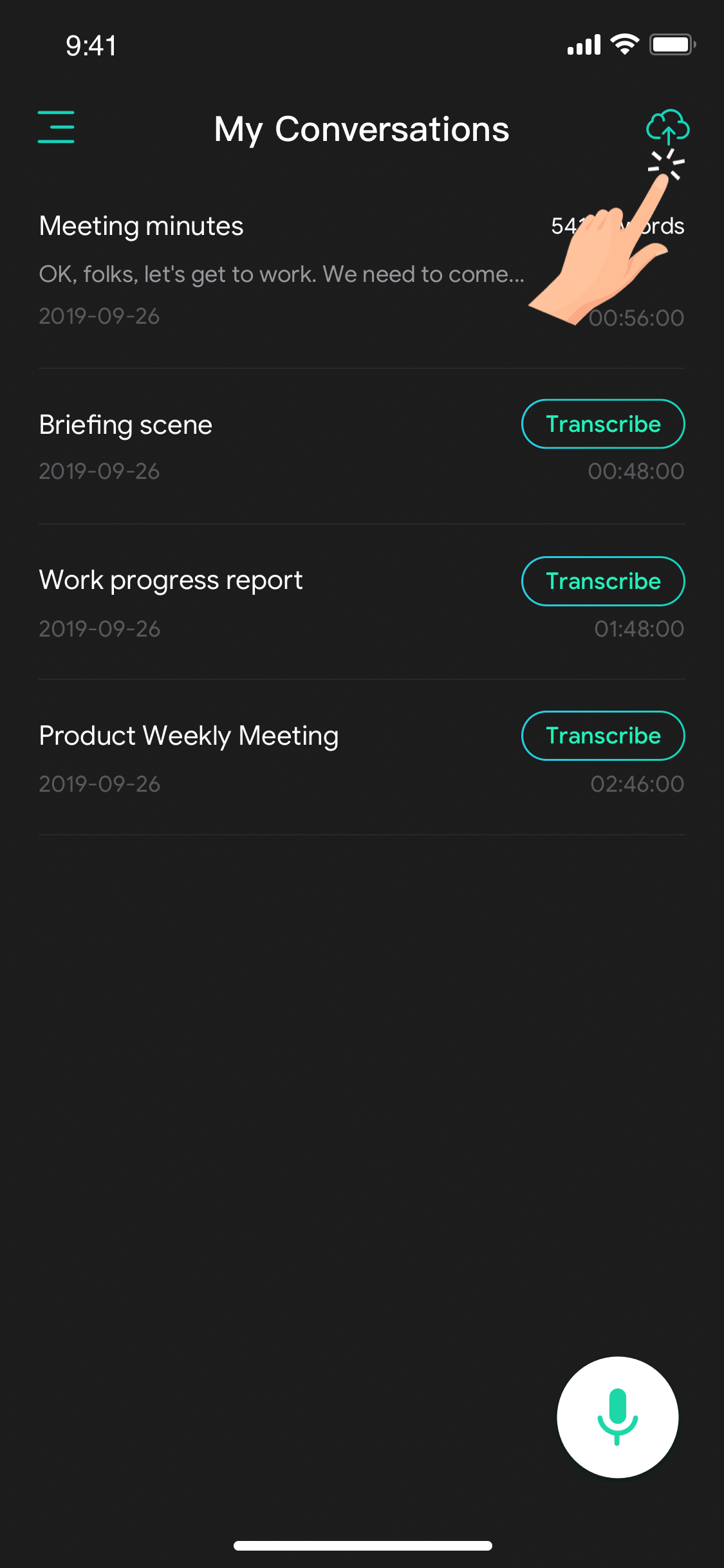 After recording or audio file transcription, a conversation record is generated in the current folder. By taping it, you can edit, export, share, search, etc in the conversations.
