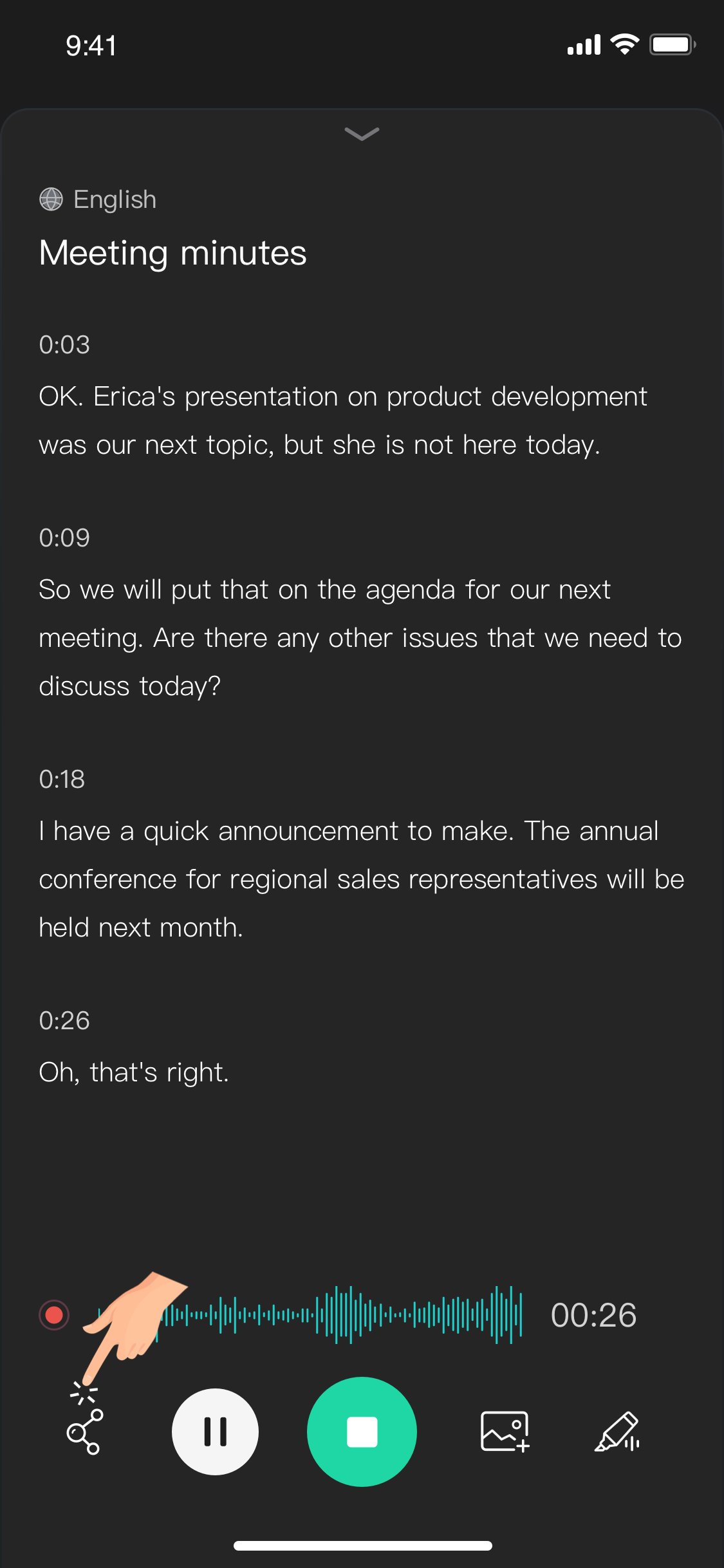 Even if your friends are not with you, through the sharing real-time transcription function,people who are shared can also view the text results in real time at any time.
