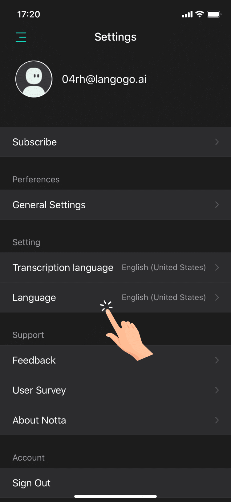Notta supports 104 transcription languages. If you want to change the language of real- time transcription, you can go to “Settings” in Notta then change the transcription languages you want.