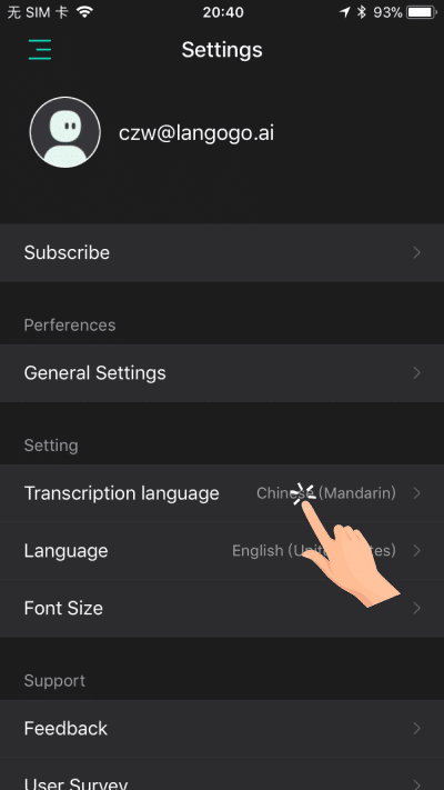 - Select your transcription language and tap "Done" button in the upper right corner.