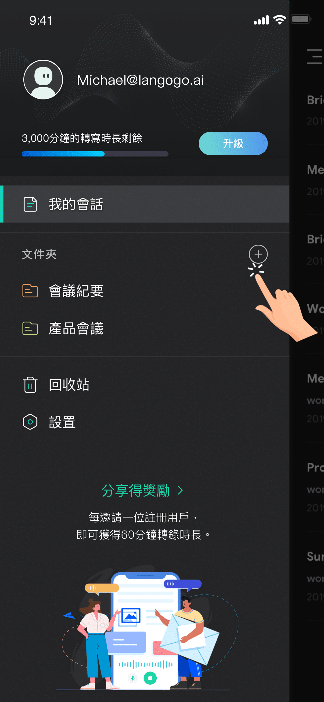 透過錄音時即時轉寫文字和新增資料夾,徹頭徹尾的了解 Notta 的操作流程。